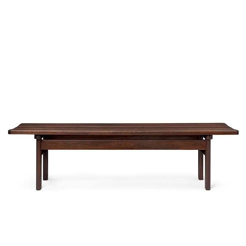 A sterling example of people-first design, Børge Mogensen’s Asserbo Bench demonstrates the Danish designer’s approach to function and form. Perfectly proportioned, the solid, dark-oiled FSC™-certified eucalyptus seat has gently rounded edges and visible brushed brass screws. Available with a fixed or wall-mounted backrest, as well as cushions in fabric, the customisable design has a warm and welcoming expression.