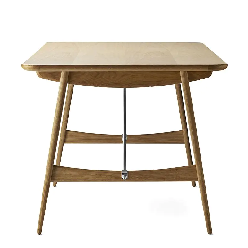 Borge Mogensen designed the BM1160 Hunting Table for the Copenhagen Cabinetmakers' Guild Furniture Exhibition in 1950. The table combines excellent woodwork with elegant metal brace bars, creating a bold and organic whole.