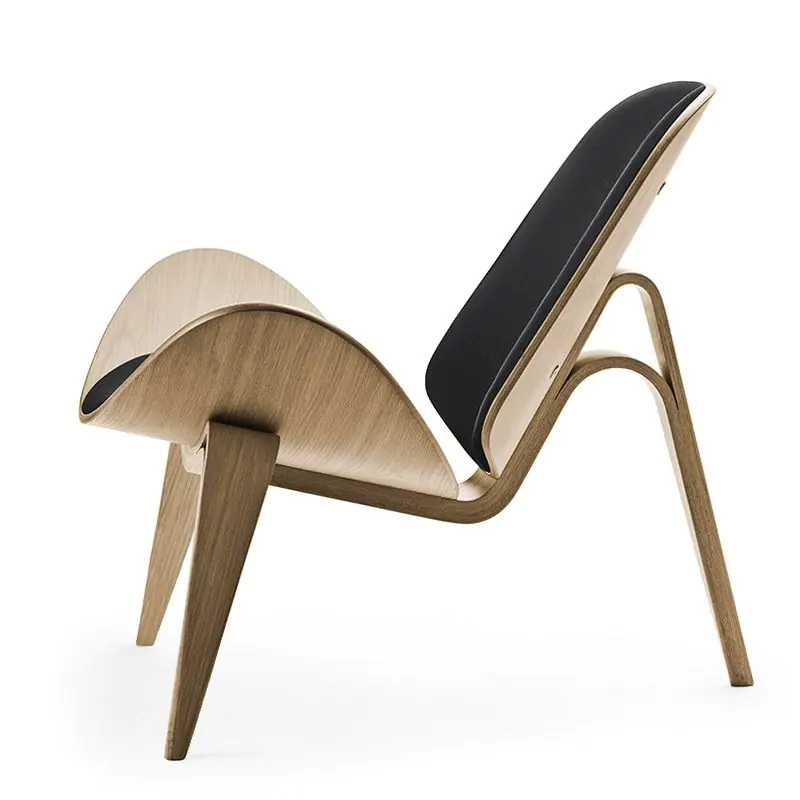The CH07 Shell Chair has a triangular footprint and a presence that is hard to place from a single angle — which is precisely the point. Wegner designed it to be viewed from all sides, and it rewards that attention: the wing-like seat curves upward at the edges, the three tapered legs arch outward with a lightness that belies their strength, and the whole form seems to hover just above the floor. It is frequently placed where it can be seen in the round — alone in a corner, or in a loose group where each chair becomes part of a composition.