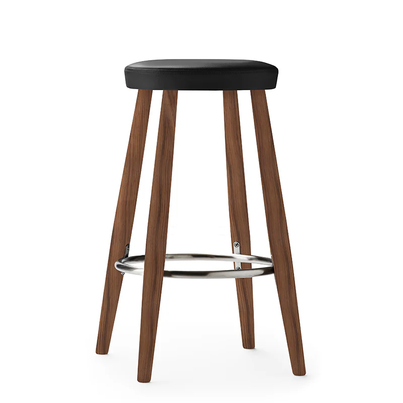The CH58 stool’s circular stainless-steel ring, which binds the four legs together, is conveniently placed for you to rest your feet comfortably under the seat. The construction provides optimal stability with the legs being thickest at the joint with the ring and thinner down to the floor and up to the seat in the signature Wegner design.