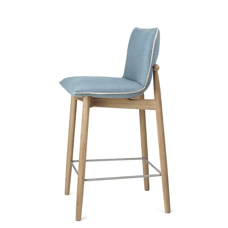 The EOO7 Embrace Bar Stool with soft upholstery not only combines optimal seating comfort with elegant lightness but unites EOOS’ strong sense of modern aesthetics and Carl Hansen & Son’s tradition for quality craftsmanship. Thanks to the tall, upholstered backrest of the Embrace Bar Stool, you can sit comfortably in the chair for a long time - you can sit back, rotate your legs to both sides and use the backrest as an armrest. A bar stool designed to combine ideal seating and back comfort with optimal freedom of movement.