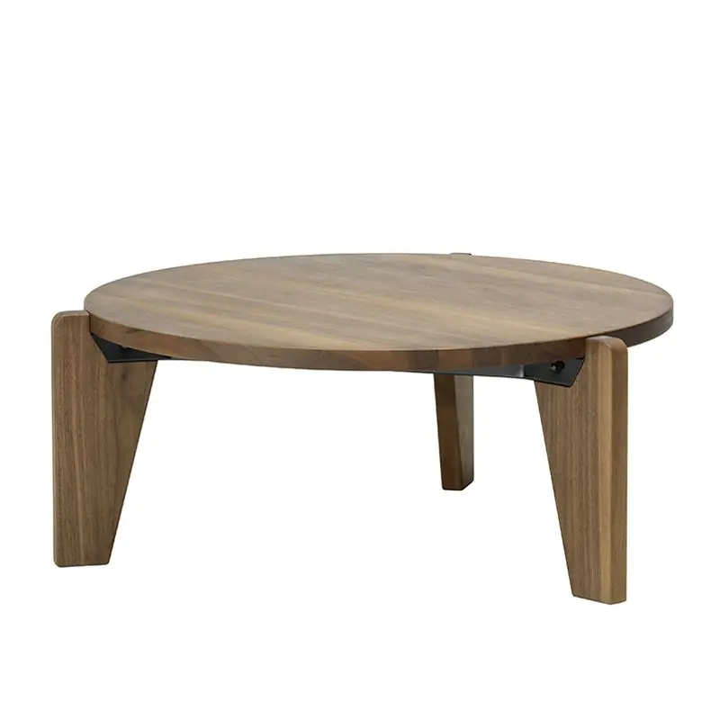 In the early 1940's, Jean Prouve began to work more extensively with wood. The Gueridon Bas table has a heavy top in solid oak or American walnut resting on three legs in the same wood. These elements are joined together by a robust construction made out of bent sheet metal.