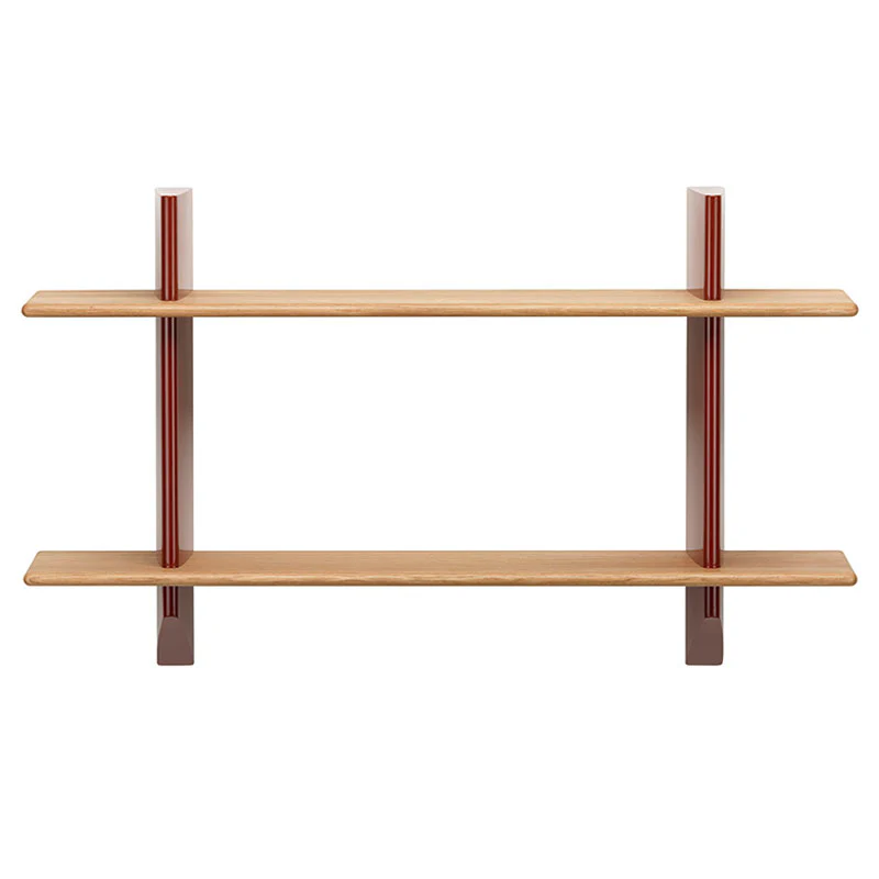 The wooden shelves come in a choice of light or dark oak while the wall brackets are available in various original Prouvé colours.