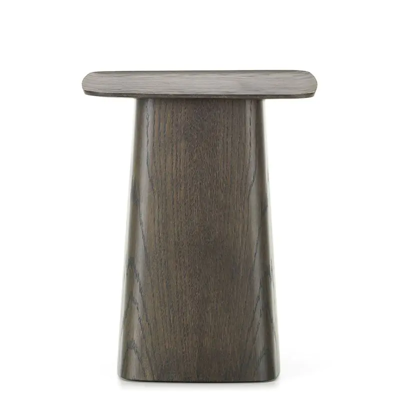 The design of the Wooden Side Tables corresponds to the Metal Side Tables created for Vitra by Ronan and Erwan Bouroullec in 2004. Like the latter, these wooden occasional tables derive their appeal from the contrast between their gracefully thin table tops and the voluminous plinth-like bases. As a distinctive feature, the plywood table tops are gently moulded around the edges to form a slight lip, which lends them an elegant, almost Japanese aura.